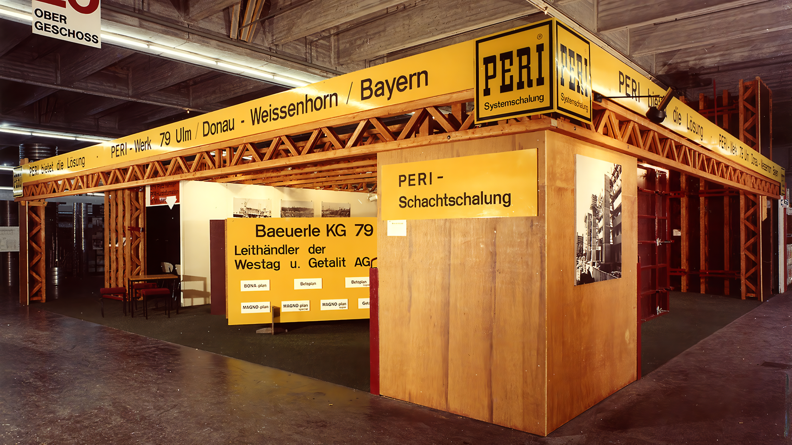 1983年、PERI(ペリー)は、型枠技術・製品の紹介のために屋外エリアに独自の展示ブースを設置しました。